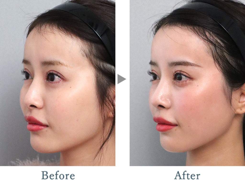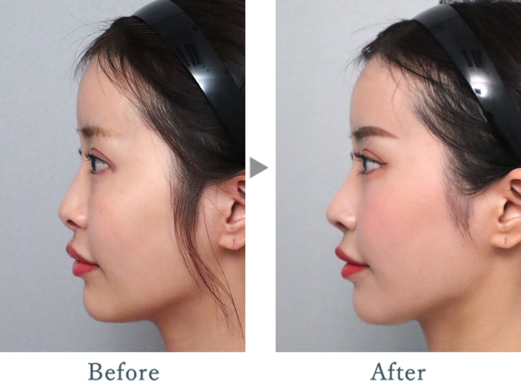 耳介軟骨を使用したコルメラストラット法にて鼻尖形成を行い、鼻尖に高さを出しEラインを整えました。