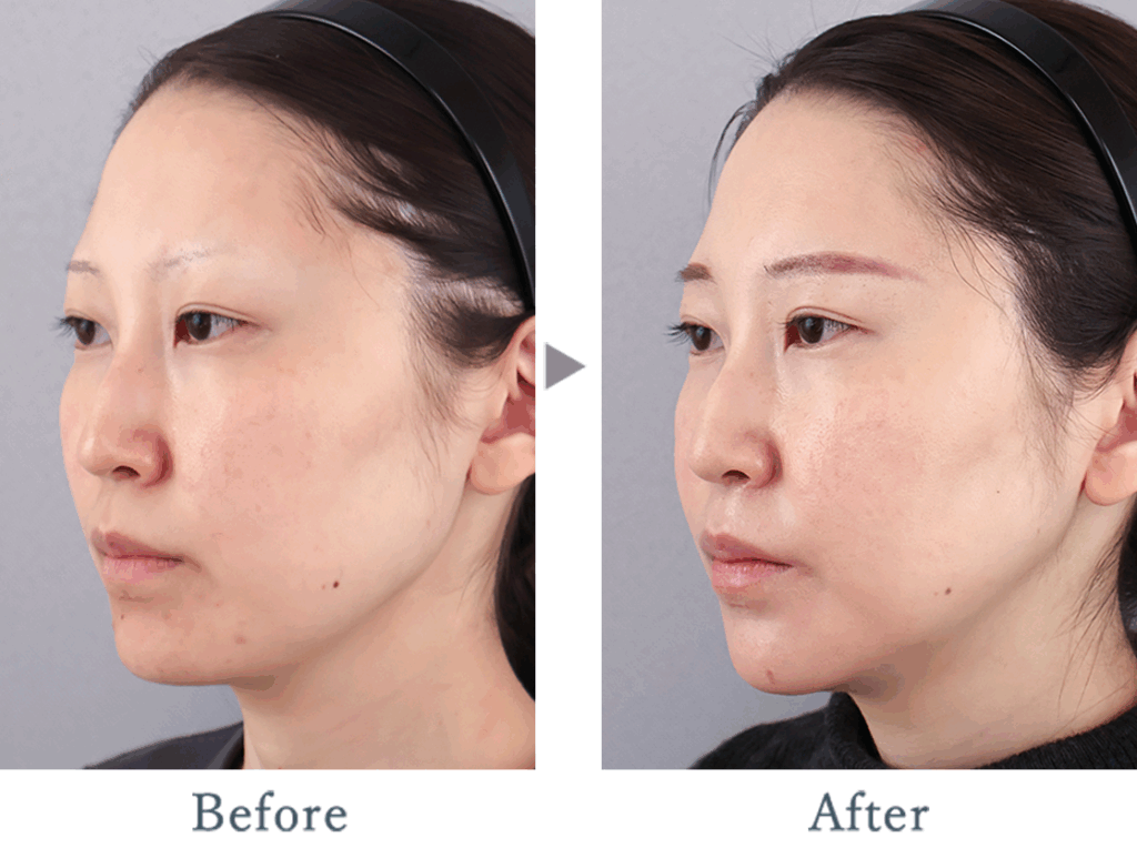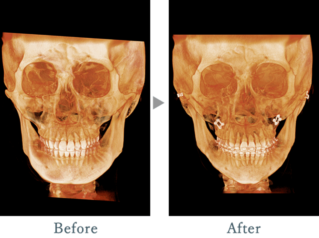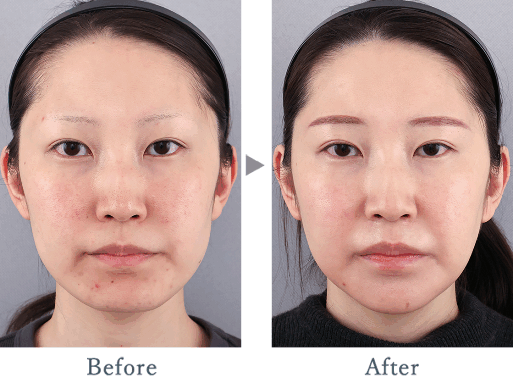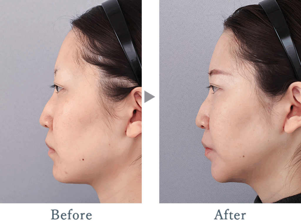 またお顔の形が四角く、顔の大きさが大きく見えてしまっていたため顎を短く、形を整えシャープな印象へ。