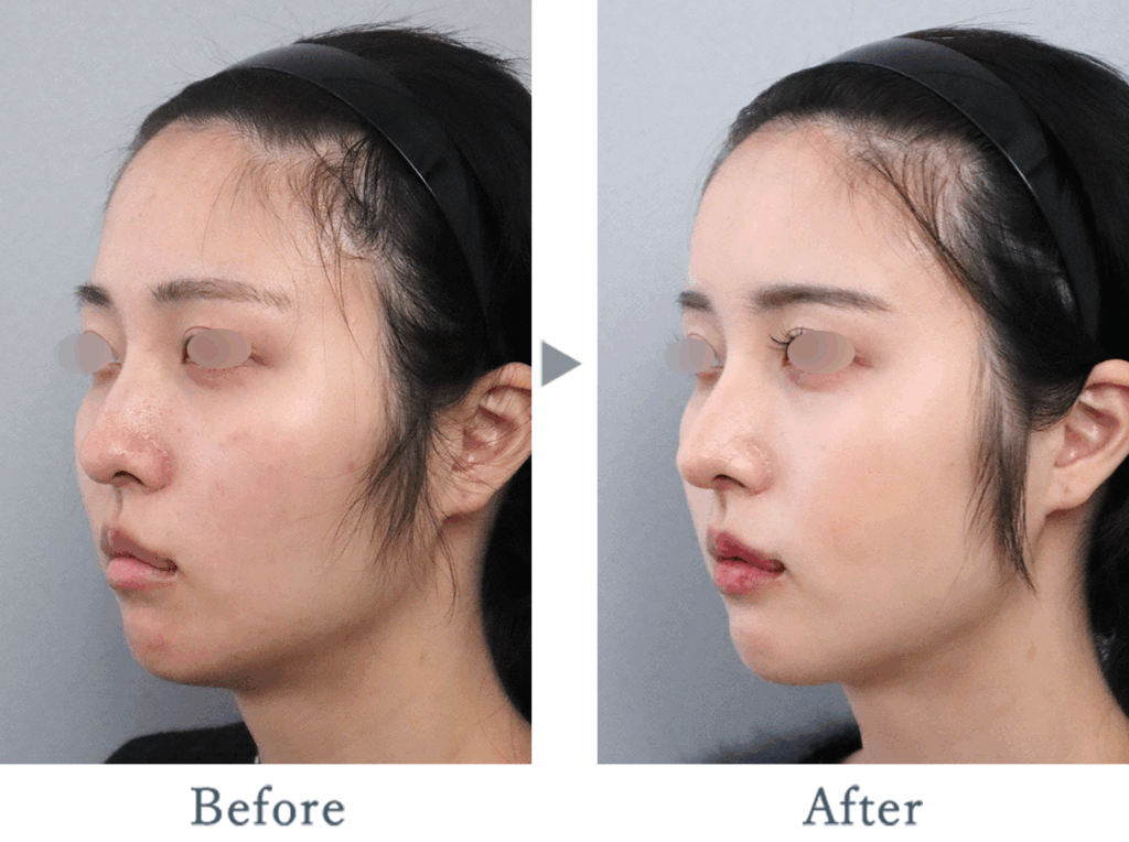 鷲鼻削り・鼻骨骨切りは行わず、ハンプ部分には耳介軟骨を移植し鼻背をストレートに整えました。