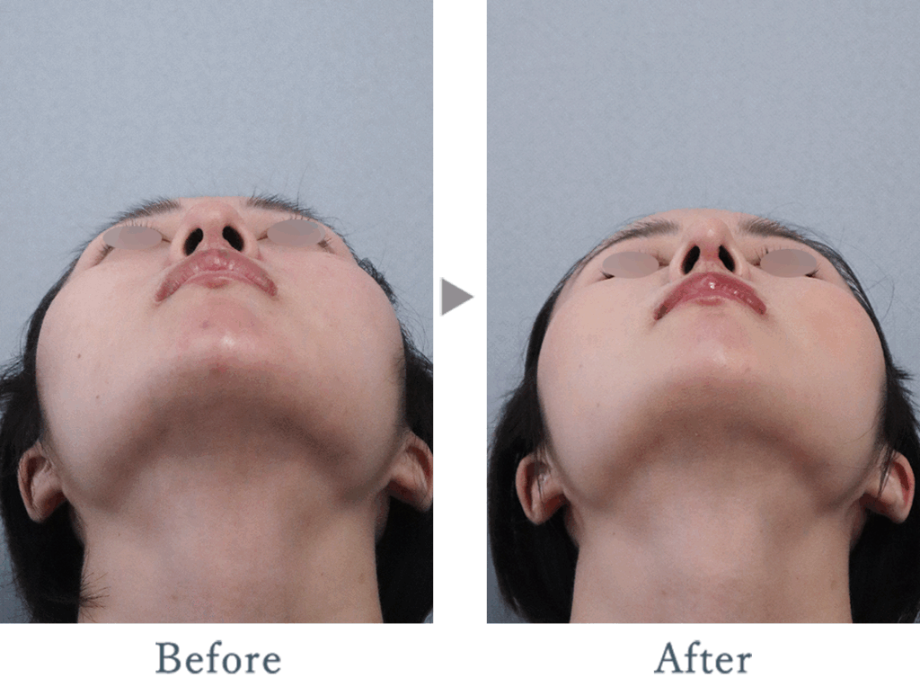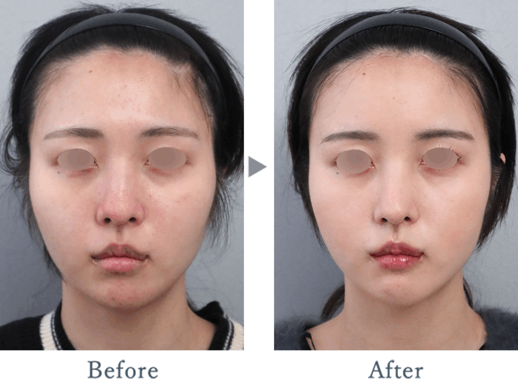 鼻翼の丸みの解消と、下向きだった鼻尖の角度を上向きに調整しました。