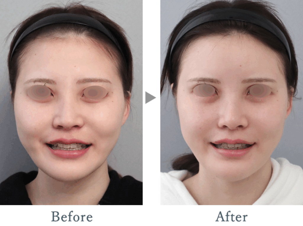 お顔全体のバランスを整えるために額と下眼瞼に脂肪注入も行いました。
