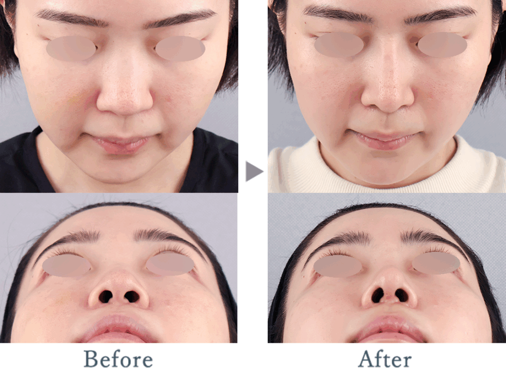 こちらの患者様は、ツンっとしたお鼻ではなく、幼い印象を残したかわいいお鼻がご希望とのことで、鼻先は丸みを残しつつ整形感のない仕上がりにしました。