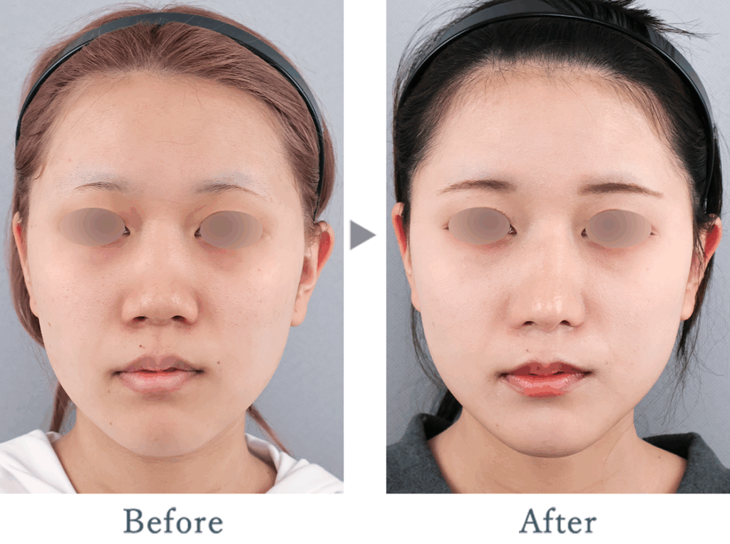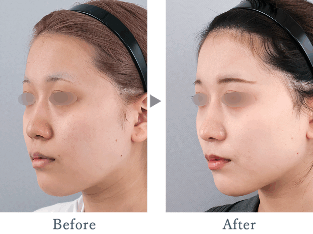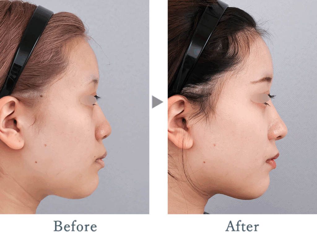 横から見ると術前は、少し口元の印象が強く、口ゴボ感がありましたが高さが出たことでEラインが整い、口元の印象が薄く横顔に立体感が出ました。