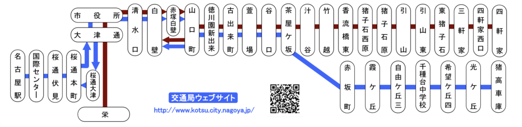 名古屋院のすぐ横にあたる大津通をはじめとし、市内を巡回しているバスとなりますので