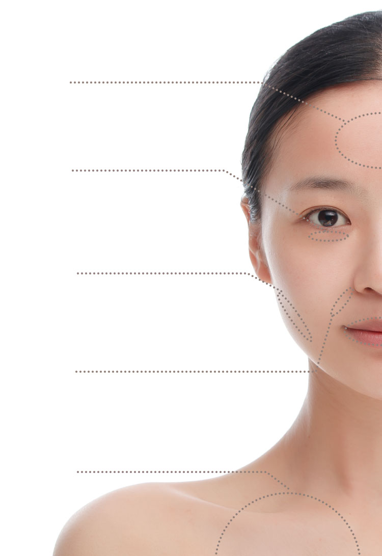 加齢に伴って減少する脂肪を補うことで老け見えの原因になる、しわやたるみ、痩せコケて骨ばった印象を改善します。