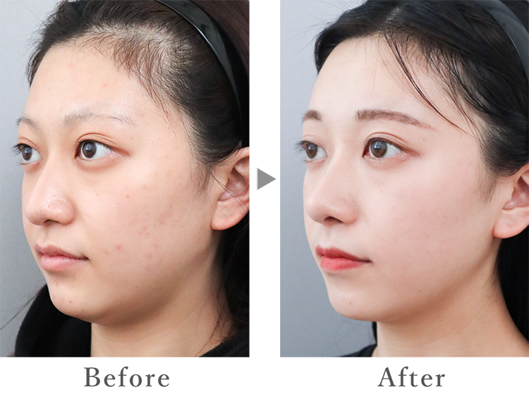 額やこめかみのくぼみは、骨格が目立ち老けた印象を与えるので、適切な量の脂肪を注入することで自然な丸みを出し、女性らしく若々しい印象になります。